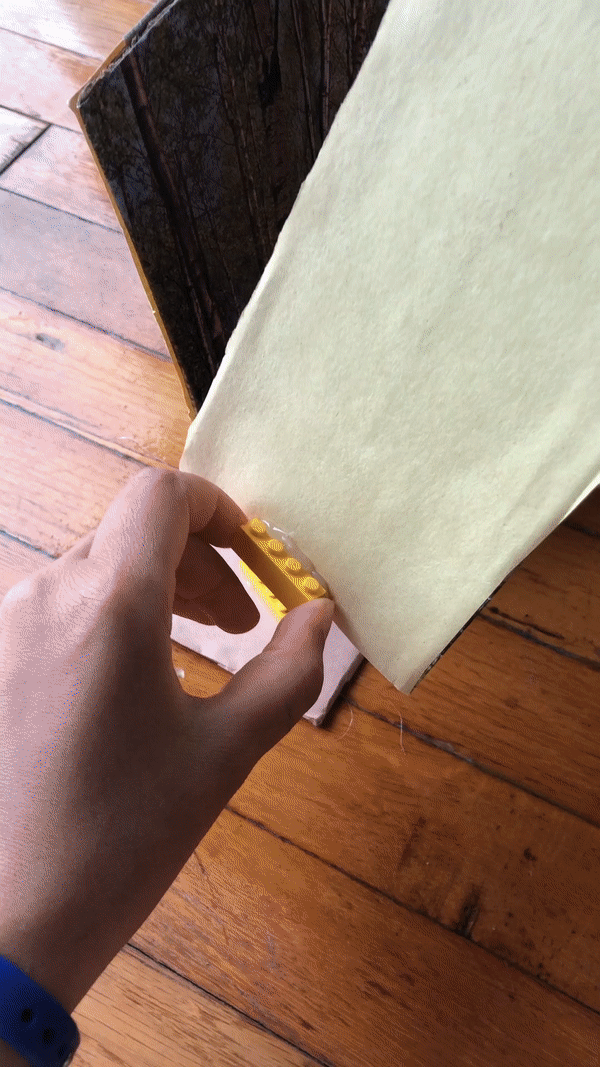 Each forest panel has a lego part attached to them at the bottom of the panel and all the person would have to do is find its identical lego on the ~ground panel~ to attach it to!